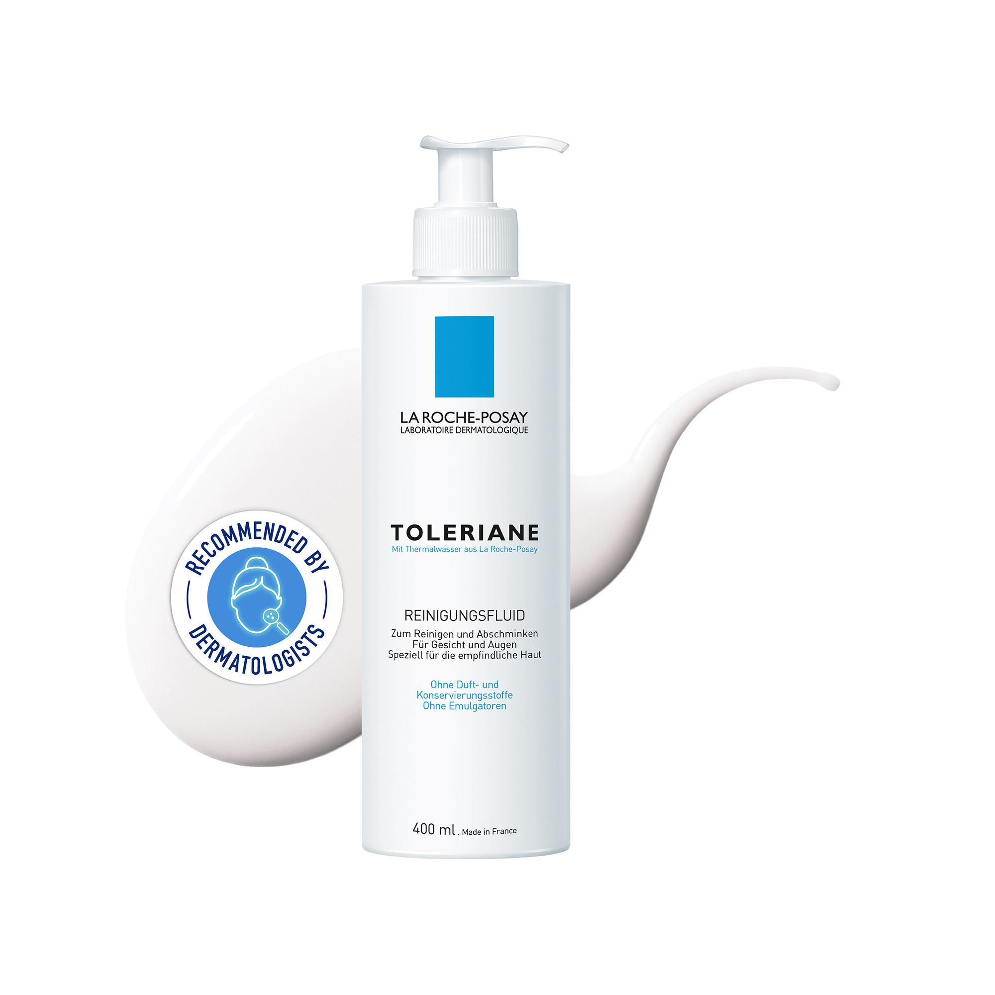 Le FLUIDE NETTOYANT TOLERIANE de La Roche-Posay nettoie en douceur la peau sensible de votre visage et du contour des yeux. Le fluide nettoyant peut également être utilisé comme démaquillant sans irriter davantage la peau. Ses ingrédients hautement tolérés ont été testés dermatologiquement sur des peaux sensibles et facilement irritables. Le FLUIDE NETTOYANT TOLERIANE est sans parfum, sans alcool et améliore l'hydratation de la peau. Testé et recommandé par l'association allemande contre les allergies et l'asthme (Deutscher Allergie- und Asthmabund e.V.). Pour plus d'informations sur le DAAB, rendez-vous sur www.daab.de.