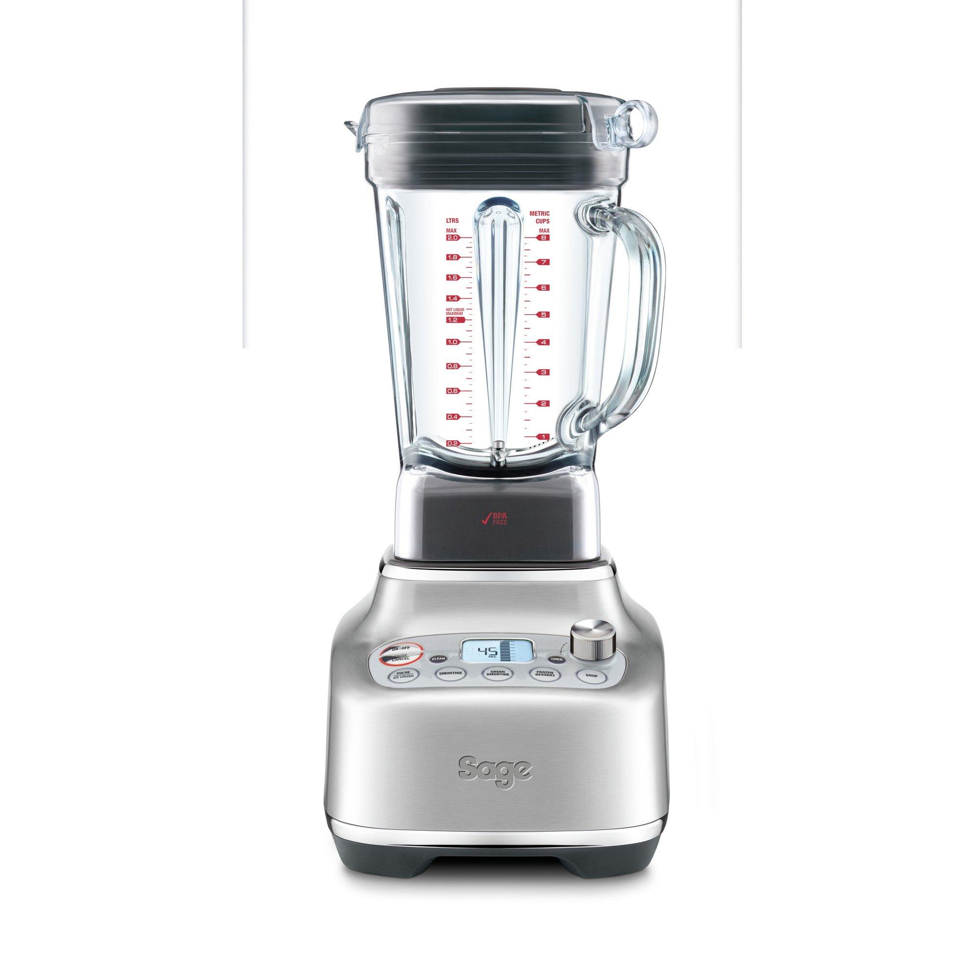 Mélangez et réduisez en purée à votre guise avec le Super Q de Sage. Mélangeur ultra rapide, silencieux et hautement performant. La nouvelle génération de mélangeurs hautes performances avec moteur puissant et technologie de réduction du bruit. Le SuperQ vous offre les fonctionnalités d'un mélangeur professionnel pour cuisiner chez vous. Doté du moteur le plus puissant, d'une fonction de détection du récipient (avec le récipient To Go) et de la technologie de suppression du bruit, le Super Q offre des possibilités illimitées de préparations aux textures plus lisses et onctueuses. 5 programmes One-Touch : préparez des smoothies au lait plus onctueux et des smoothies verts plus crémeux grâce aux deux programmes de smoothies. Transformez les glaçons en glace pilée avec la fonction Puls/Ice Crush, faites preuve de créativité avec la fonction Desserts glacés ou préparez rapidement des soupes avec la fonction Soupes. 12 réglages de vitesse : sélection facile de la vitesse et optimisation de la texture avancée pour des textures plus crémeuses : cocktails frais, sauces froides et chaudes, laits de noix et de soja, beurres de noix naturels, assaisonnements délicieux et farines finement moulues. Silencieux et efficace : avec son moteur performant de 2400 watts, le SuperQTM possède la puissance la plus élevée possible. La vitesse de rotation de 300 km/h garantit des résultats rapides.