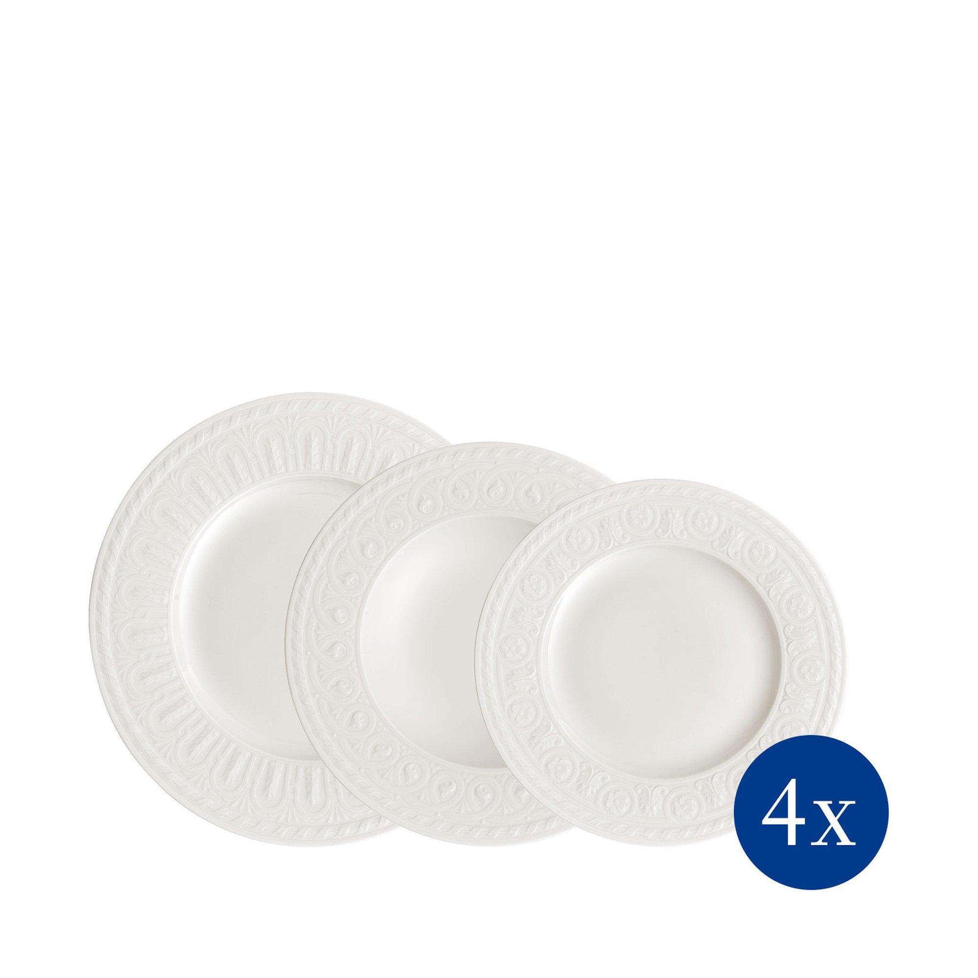 Service de vaisselle de Villeroy & Boch de la collection Cellini en porcelaine de haute qualité. L'ensemble est de 12 pièces et se compose de quatre assiettes à dîner, assiettes à soupe et assiettes à petit-déjeuner.