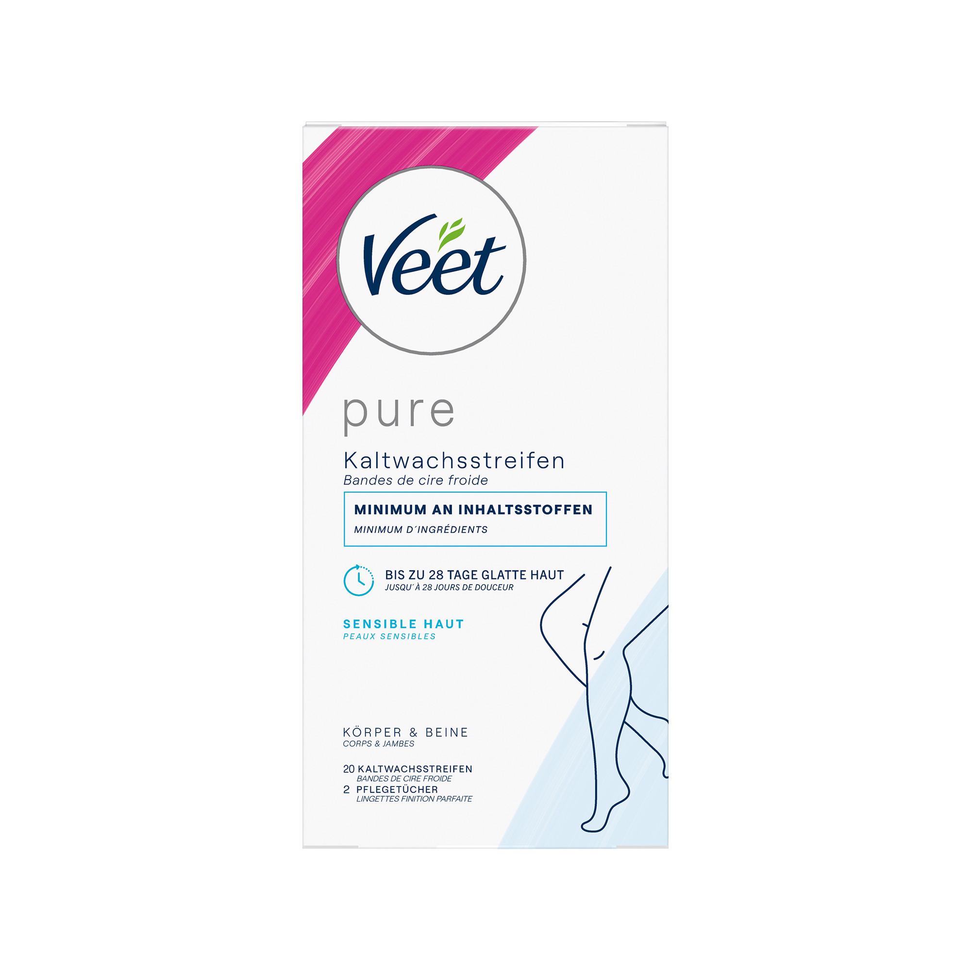 Veet, Pure - Sensible Haut - Körper & Beine, Bandes de Cire Froide Hair Minimizer - Peaux Sensibles