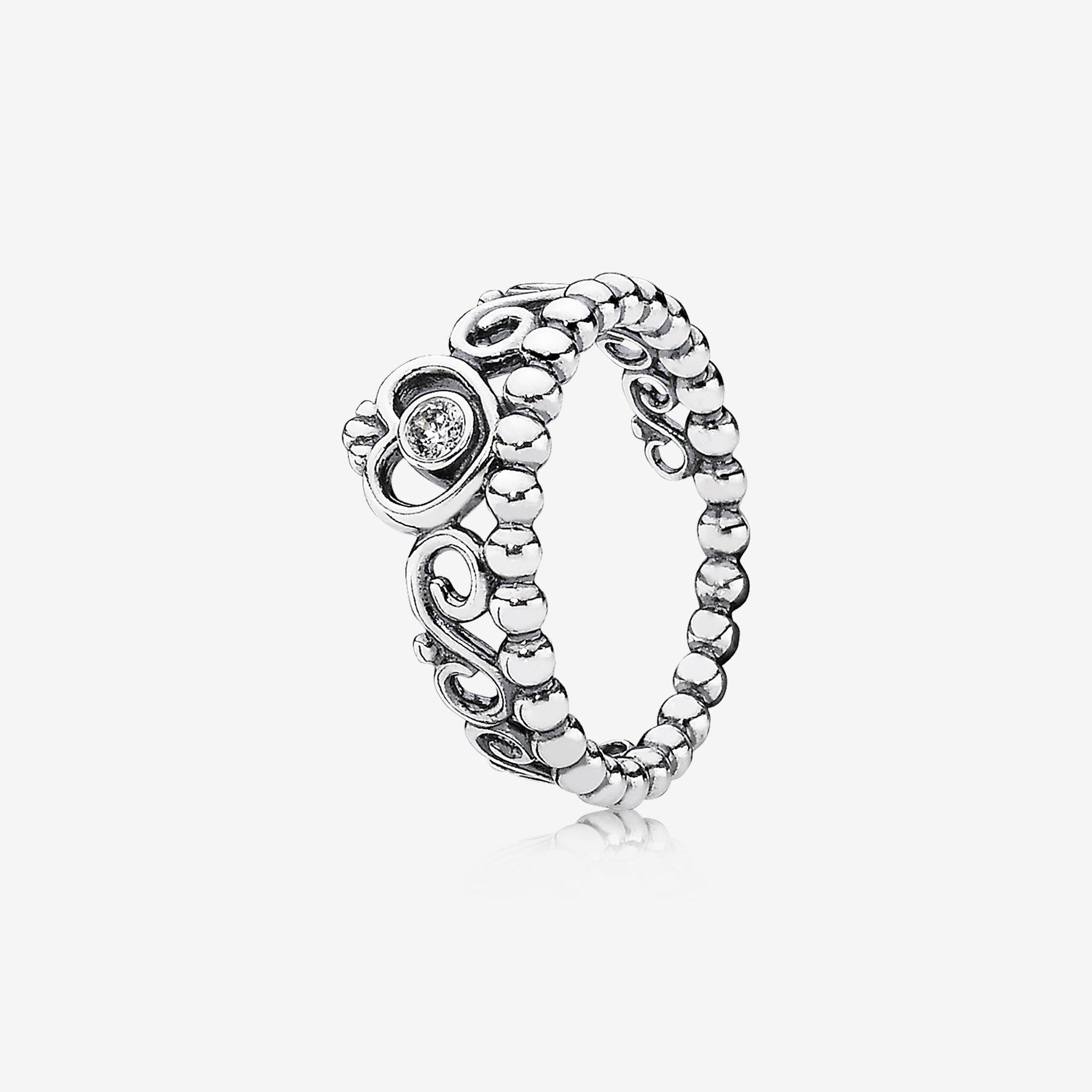 Couronnez votre look avec cette bague fabriquée avec l'amour des détail de la marque Pandora. Ce bijou élégant est orné d'une petite couronne filigrane, au centre de laquelle une pierre décorative à facettes rayonne.