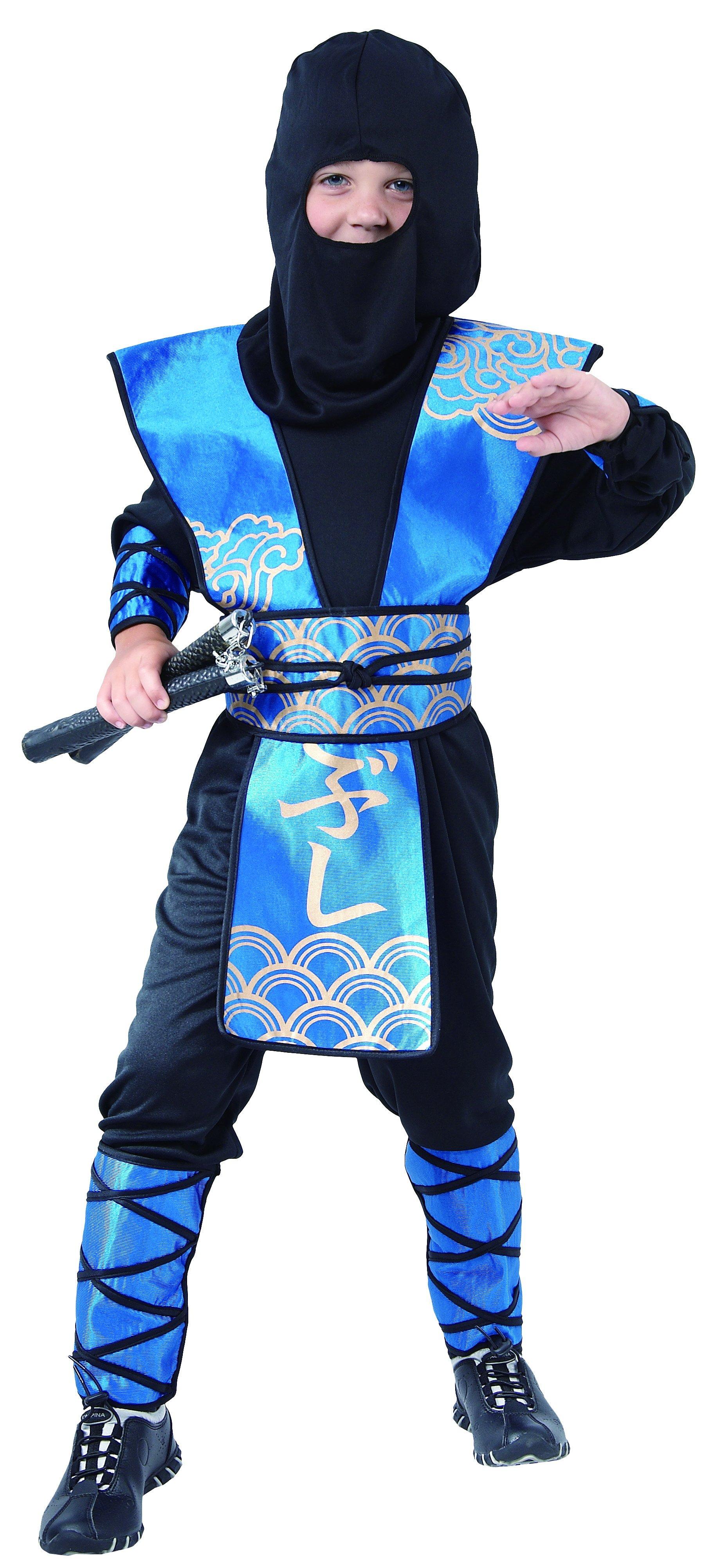 Le costume ninja bleu se compose d'un haut, d'une jupe aux armes, d'un pantalon et d'une casquette de combat. Attention! Ne convient pas aux enfants de moins de 3 ans.