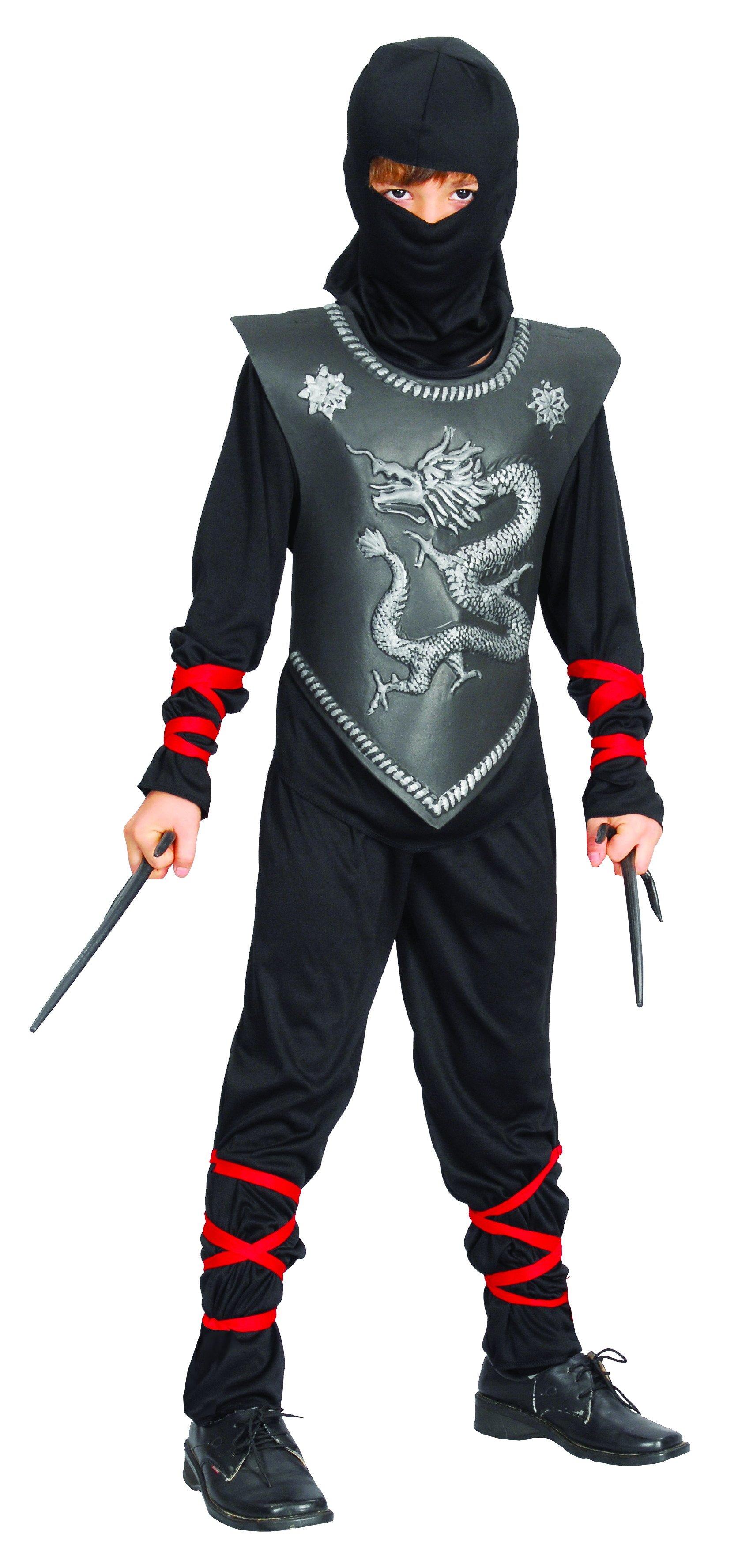 Le costume ninja noir se compose d'un haut, d'un plastron, d'un pantalon et d'une casquette de combat. Attention! Ne convient pas aux enfants de moins de 3 ans.