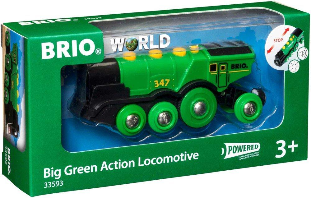 Cette locomotive à piles fonctionne en marches avant et arrière. Une fois en marche, les 2 phares avant de la locomotive s’illuminent en même temps qu’elle fait « Tchou tchou ! ». Elle peut aussi être poussée manuellement en roues libres si vous désélectionnez la fonction à piles.