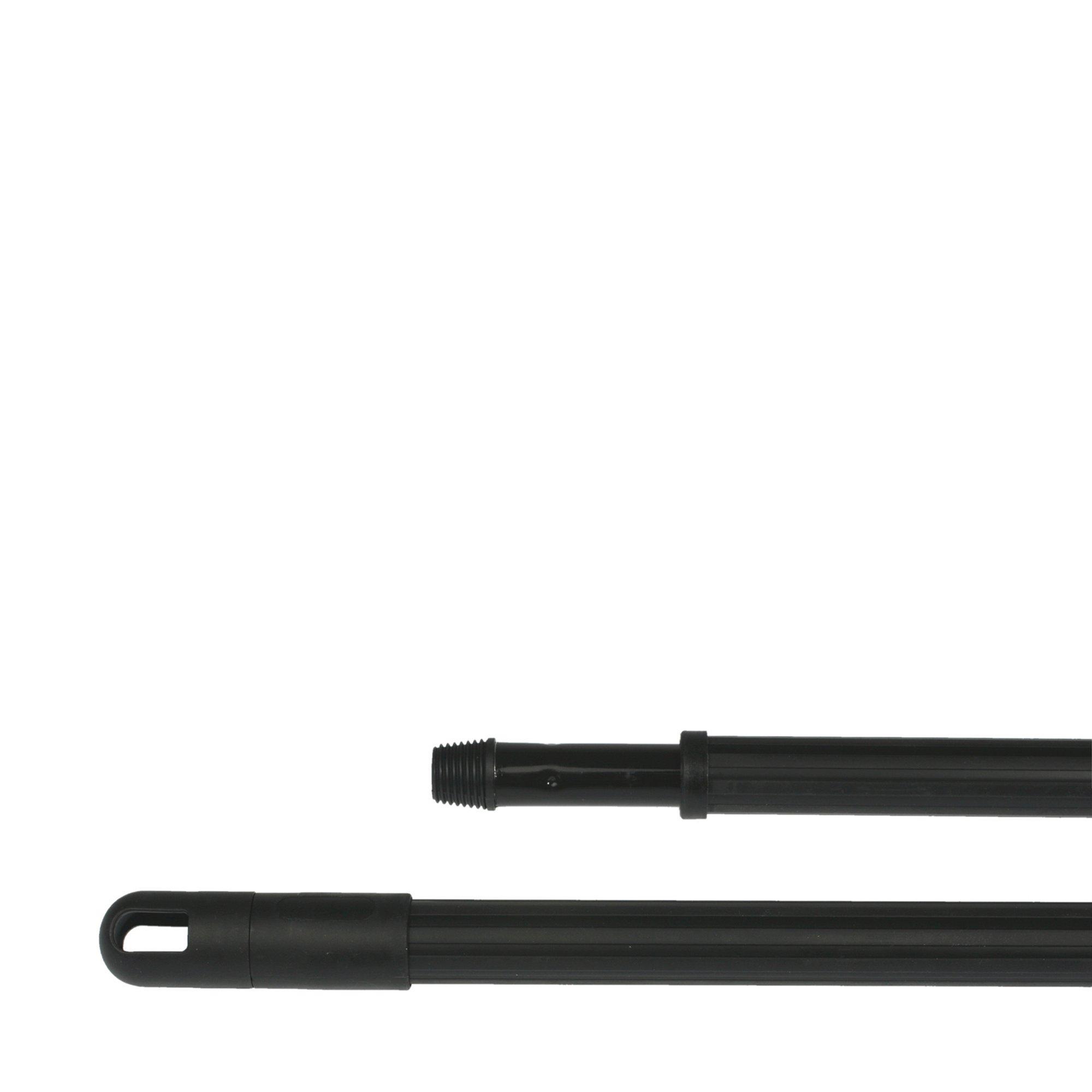Un télescope permet de voir les étoiles, un manche télescopique permet de les nettoyer! Cette affirmation est certes un peu exagérée, mais une longueur maximale de deux mètres permet d'atteindre quasiment tout ce qui vaut la peine d'être nettoyé. Grâce au revêtement en caoutchouc, le manche ne glisse pas des mains et peut se régler dans différentes tailles. Ainsi, il n'y a plus de prétexte pour se soustraire au ménage, ni pour les grands ni pour les petits. Le manche possède une suspension pivotante et un filetage en matière synthétique et s'adapte ainsi parfaitement à nos brosses et balais avec filetage en matière plastique.