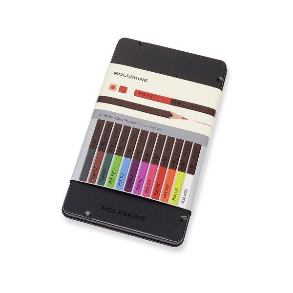 - 12 crayons aquarelle au design emblématique et essentiel de Moleskine.