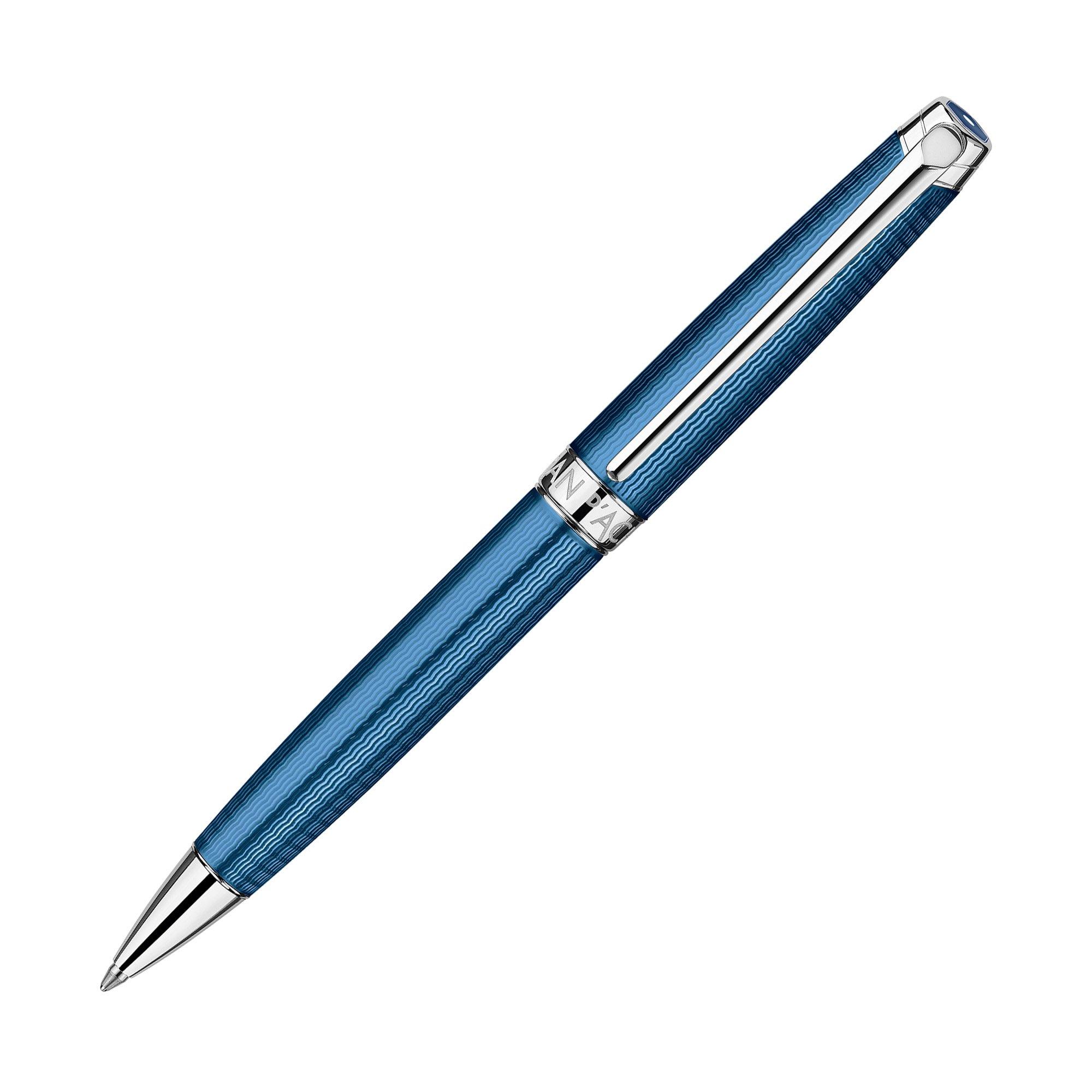 Le stylo-bille de la nouvelle ligne "Léman Grand Bleu" rappelle la surface de l'eau avec son motif gravé en forme d'ondes récurrentes. Le bleu intense est mis en valeur par une laque transparente qui le fait briller délicatement.