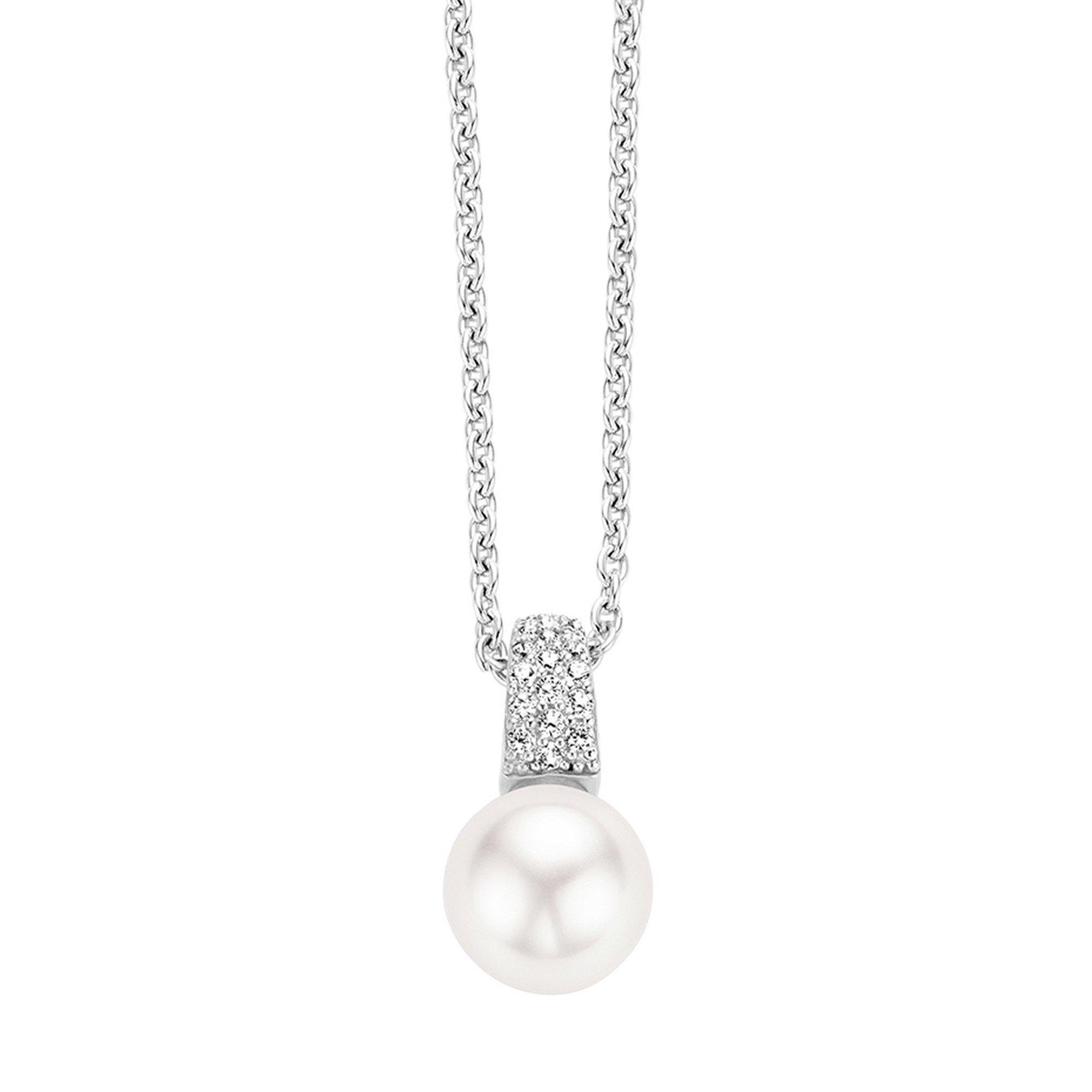 Un collier classique TI SENTO - Milano avec référence 3877PW. Ce collier a un pendentif en pavé de zircons et une blanche perle Swarovski. Le collier est réalisé en argent fin rhodié. Le rhodiage fournit un éclat durable et protège le bijou contre la naturelle décoloration. La combinaison de perles et de zircons rendent le collier une pièce véritablement facile à assortir avec d'autres biijoux TI SENTO.