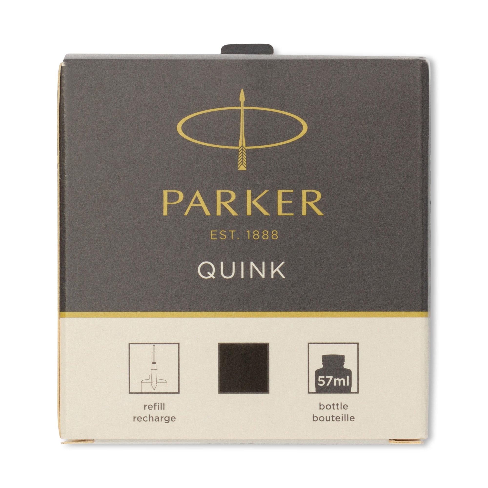 Grâce aux flacons d'encre QUINK de PARKER, redécouvrez le plaisir simple de l'écriture. Avec son encre fluide, riche et d'un noir intense, vous apprécierez le rituel intemporel de remplissage de l'encre pour utiliser votre stylo plume. Avec l'encre PARKER pour stylo plume, vous pouvez coucher vos pensées sur le papier avec l'authenticité de l'encre liquide.