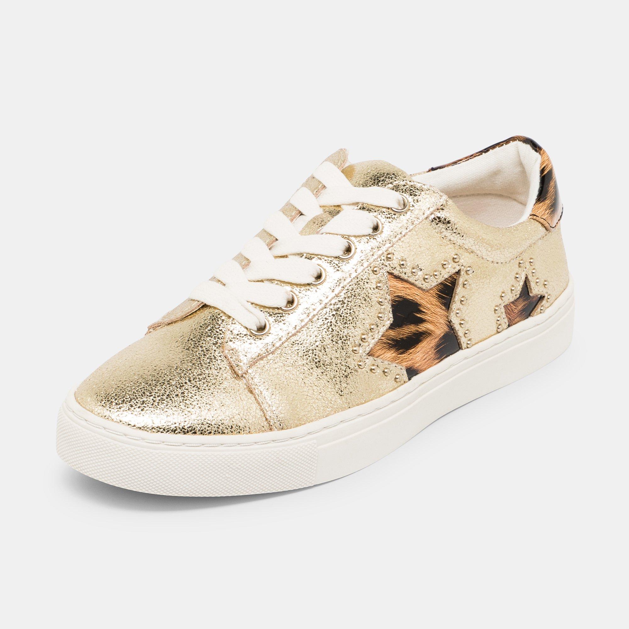 Baskets en cuir remarquables de la marque tendance londonienne Kurt Geiger, d'aspect métallisé, avec des détails en forme d'étoile et ornées de rivets.