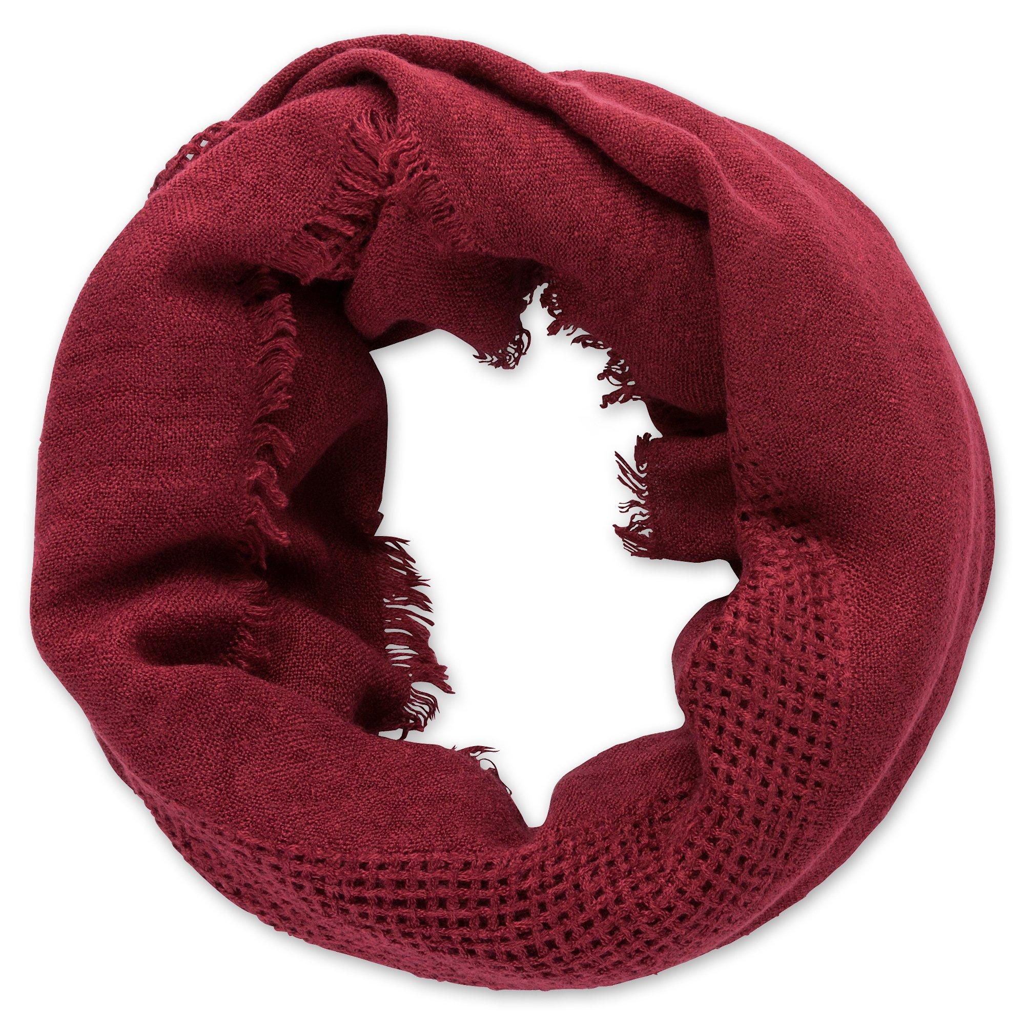 Cette écharpe tube est confectionnée dans une matière douce qui garantit un confort élevé. Le coloris discret est embelli par des motifs ajourés ainsi que de fines franges. Cet accessoire tendance confère à chaque tenue une touche particulière.