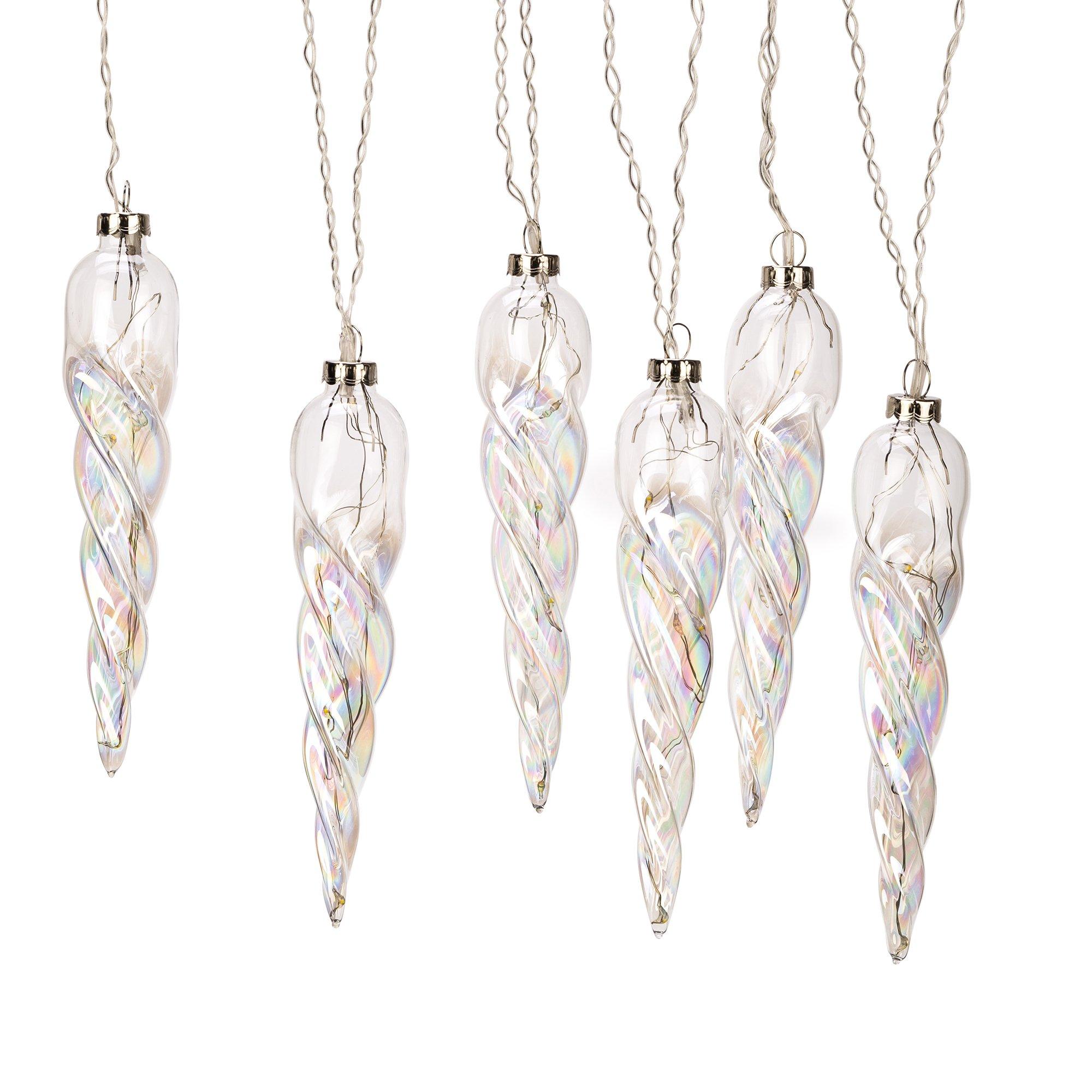 La guirlande lumineuse à LED fonctionnant à piles se compose de 6 éléments lumineux coniques en verre véritable. Créez une atmosphère de Noël sur simple pression d'un bouton.