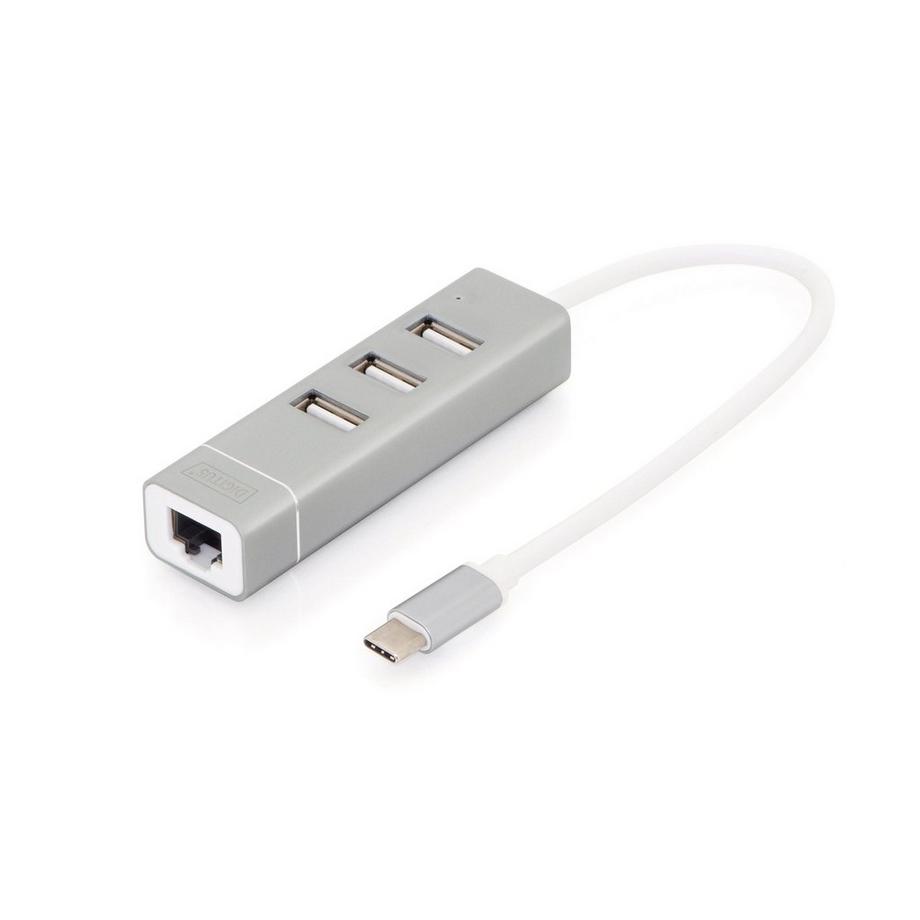 DigitusConcentrateur USB 2.0 3 ports et adaptateur LAN Fast Ethernet avec connecteur de Type-C™