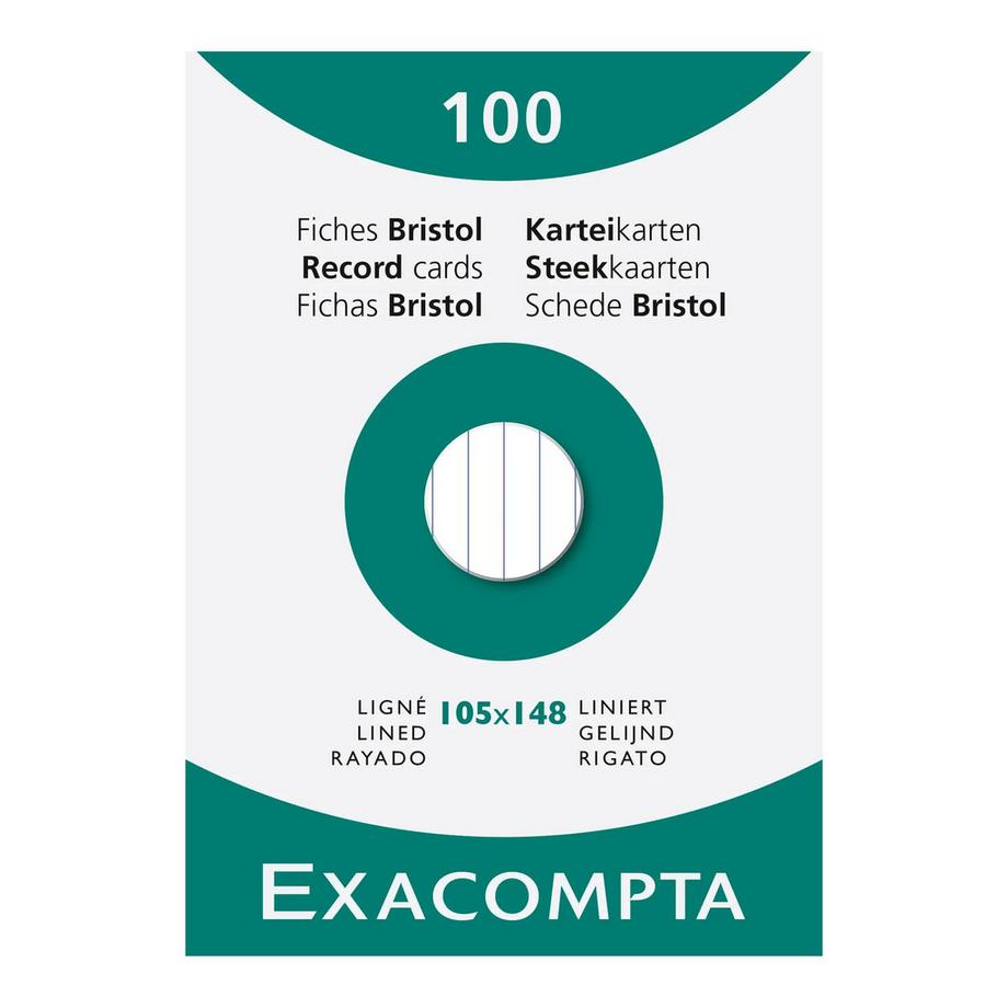 ExacomptaÉtui de 100 fiches - bristol blanc ligné non perforé 105x148mm - x 10