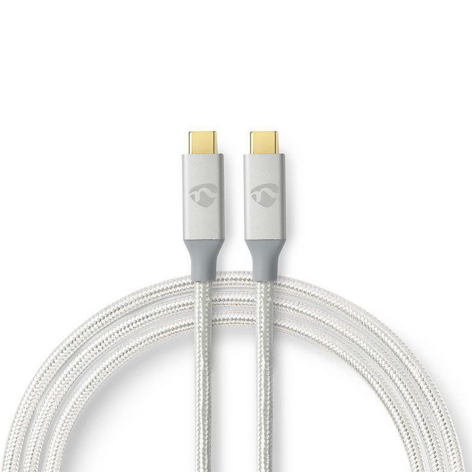 NedisCâble USB | USB 3.2 Gen 2x2 | USB-C™ mâle | USB-C™ mâle | 100 W | 4K@60Hz | 20 Gbps | Plaqué or | 2,00 m | Rond | Tressé / Nylon | Argent | Boîte avec fenêtre couverte