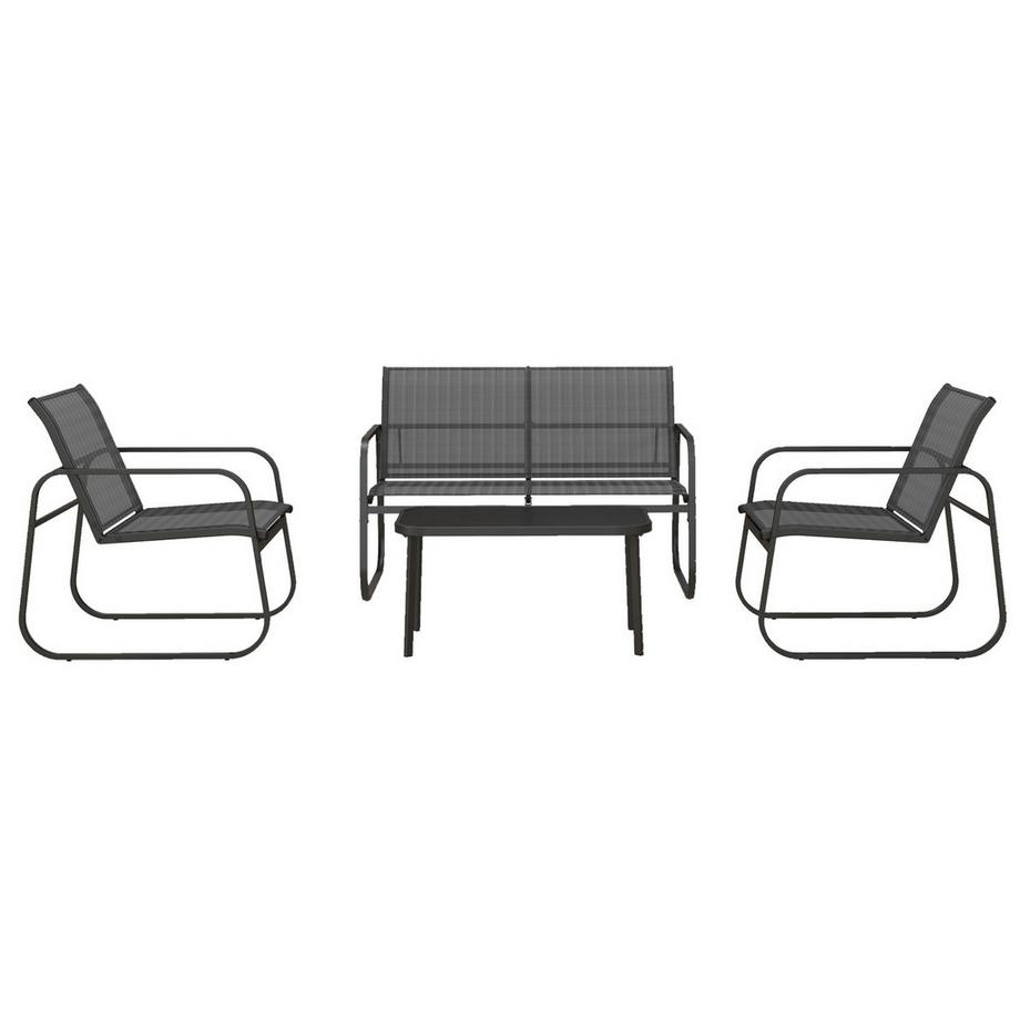 NorthioSalon de jardin 4 pièces. Salon de jardin comprenant 1 biplace, 2 chaises, 1 table basse, ensemble de meubles de balcon en résille noire pour terrasse et jardin