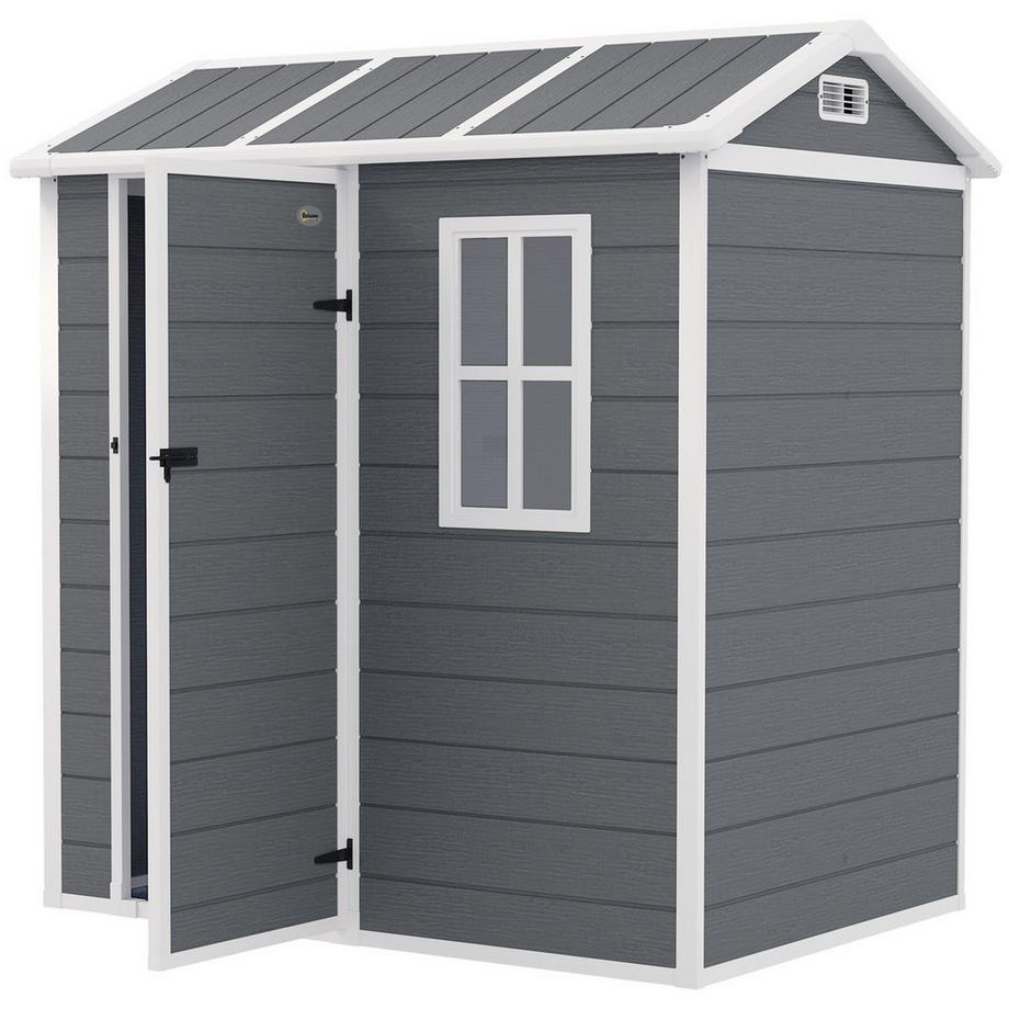 NorthioAbri de jardin en plastique 2,1 m² 186 x 130 x 199 cm avec toit à pignon, fenêtre de sol, porte verrouillable, abri de jardin résistant aux intempéries, abri de jardin extérieur pour arrière-cour, gris Aosom