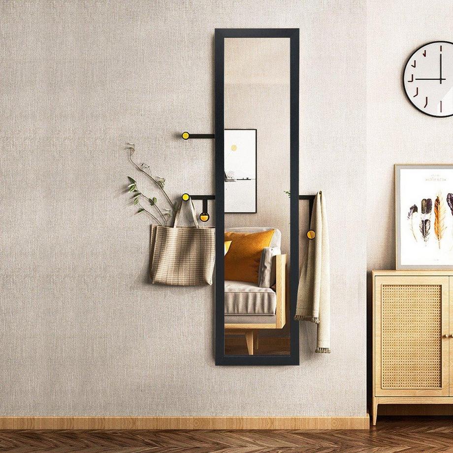 NorthixMiroir mural, miroir de porte, miroir pleine longueur avec crochets de suspension réglables en hauteur, noir
