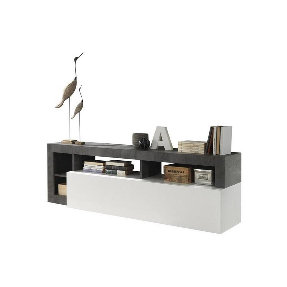 Vente-uniqueMeuble TV SEFRO 1 porte 4 niches laqué béton