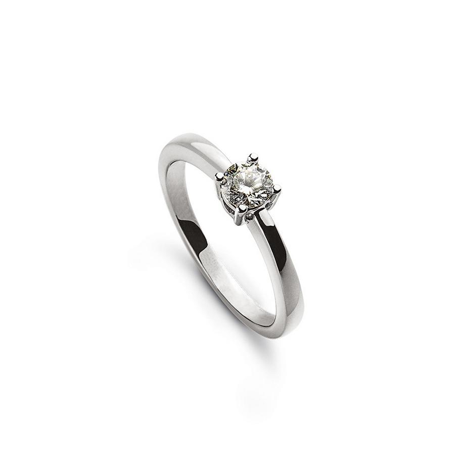 MUAU SchmuckBague solitaire serti 6 griffes or blanc 750, brillant 0.25ct.