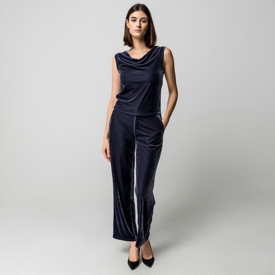 - Au bureau : Privilégiez un top chemisier de teinte neutre porté sous un blazer avec un pantalon accordé.