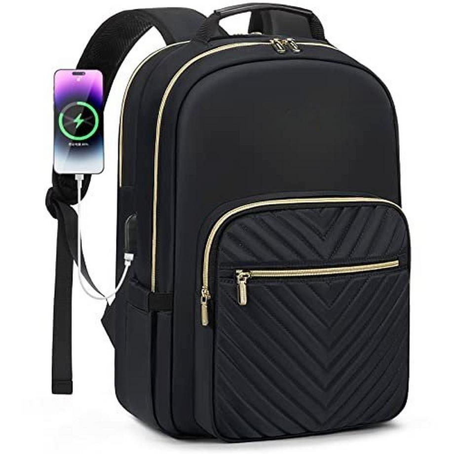 Sac à dos, grand sac pour ordinateur portable 15,6 pouces, sac à dos d'école étanche, sac à dos pour adolescents noir avec port de chargement USB, sac à dos élégant pour l'école et l'université