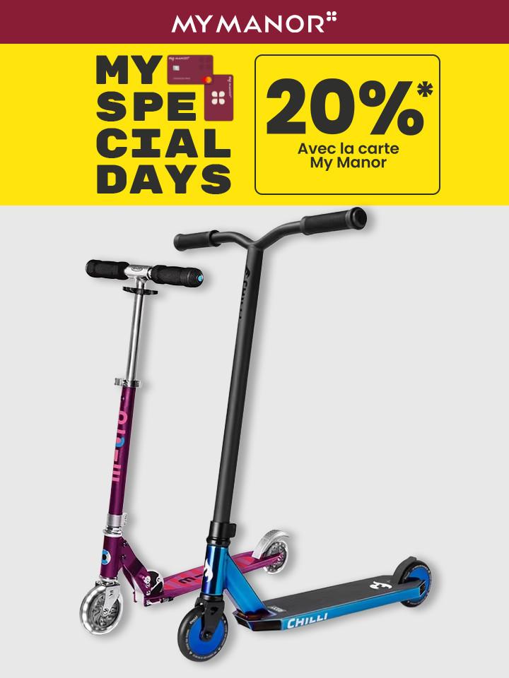 Que ce soit dans votre propre jardin, pendant les vacances d'été ou dans le cadre d'activités de week-end, les petits veulent profiter au maximum des périodes ensoleillées durant la saison chaude. Pour des loisirs de plein air parfaits quel que soit l’âge des enfants, vous trouverez chez Manor un large choix de jeux aquatiques et jeux de jardin. Avec des toboggans, des bacs à sable et des trampolines, vous transformerez votre oasis de nature personnelle en un monde d'aventures en plein air pour vos petits. Les trottinettes pour enfants et les vélos pour enfants deviendront des compagnons appréciés qui favorisent le plaisir de l'activité physique quotidienne et durant les loisirs. Achetez dès maintenant chez Manor et vivez de purs loisirs en plein air avec toute votre famille !