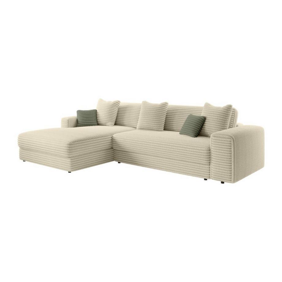 PASCAL MORABITOCanapé d'angle gauche en velours côtelé grosses côtes beige CALAZO de Pascal Morabito