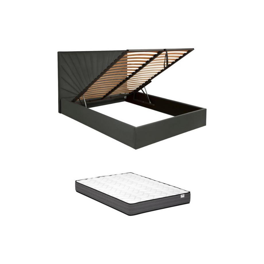 Vente-uniqueLit coffre 140 x 190 cm - Velours - Gris anthracite + Matelas - RILIODA de Pascal Morabito