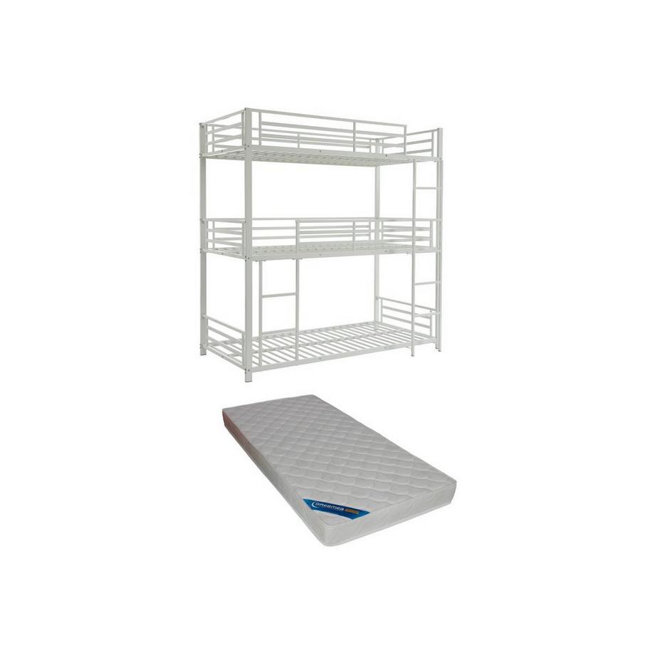 Vente-uniqueLits superposés triple 3 x 90 x 190 cm - Métal - Blanc + Matelas - ELOUAN III