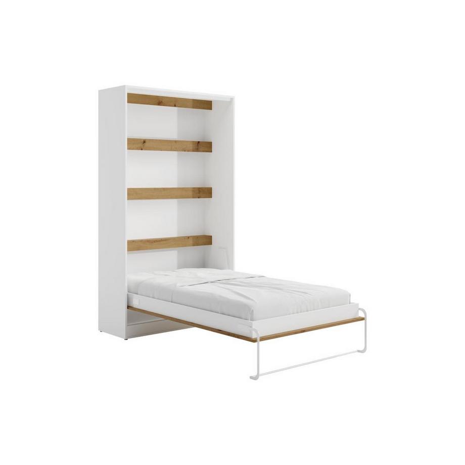 Vente-uniqueLit escamotable 140 x 200 cm - Ouverture verticale manuelle - Avec LEDs - Blanc et naturel - RAPILI