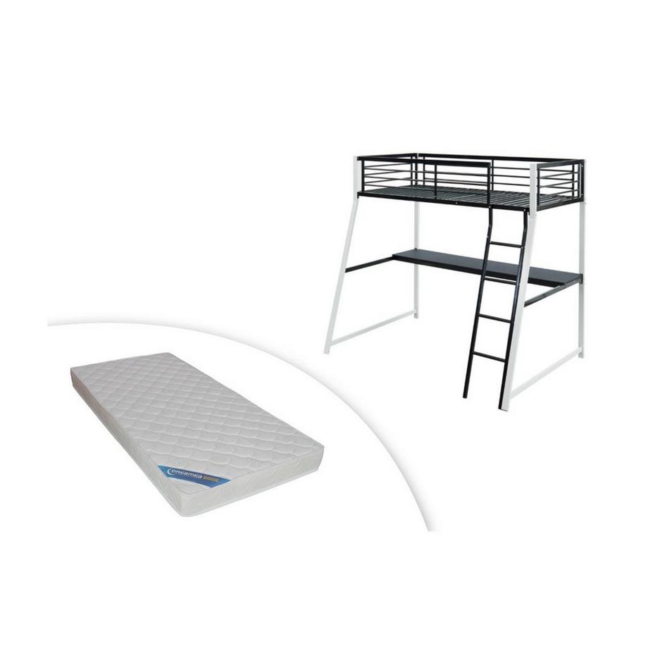 Vente-uniqueLit mezzanine MALICIA bureau intégré + matelas