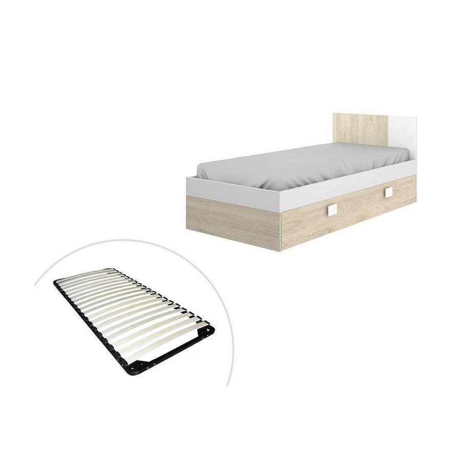 Vente-uniqueLit 90 x 200 cm avec rangements - Coloris : Naturel + Sommier - TENALIA