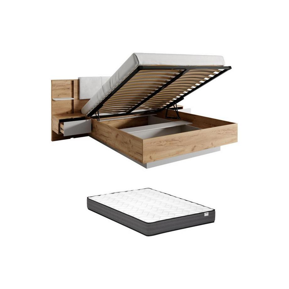 Vente-uniqueLit coffre avec chevets 160 x 200 cm - Avec LEDs - Coloris : Naturel et blanc + Matelas - ELYNIA