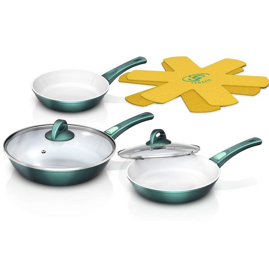 GeniusPoêles Cerafit Fusion, ensemble de 7 pièces, vert émeraude