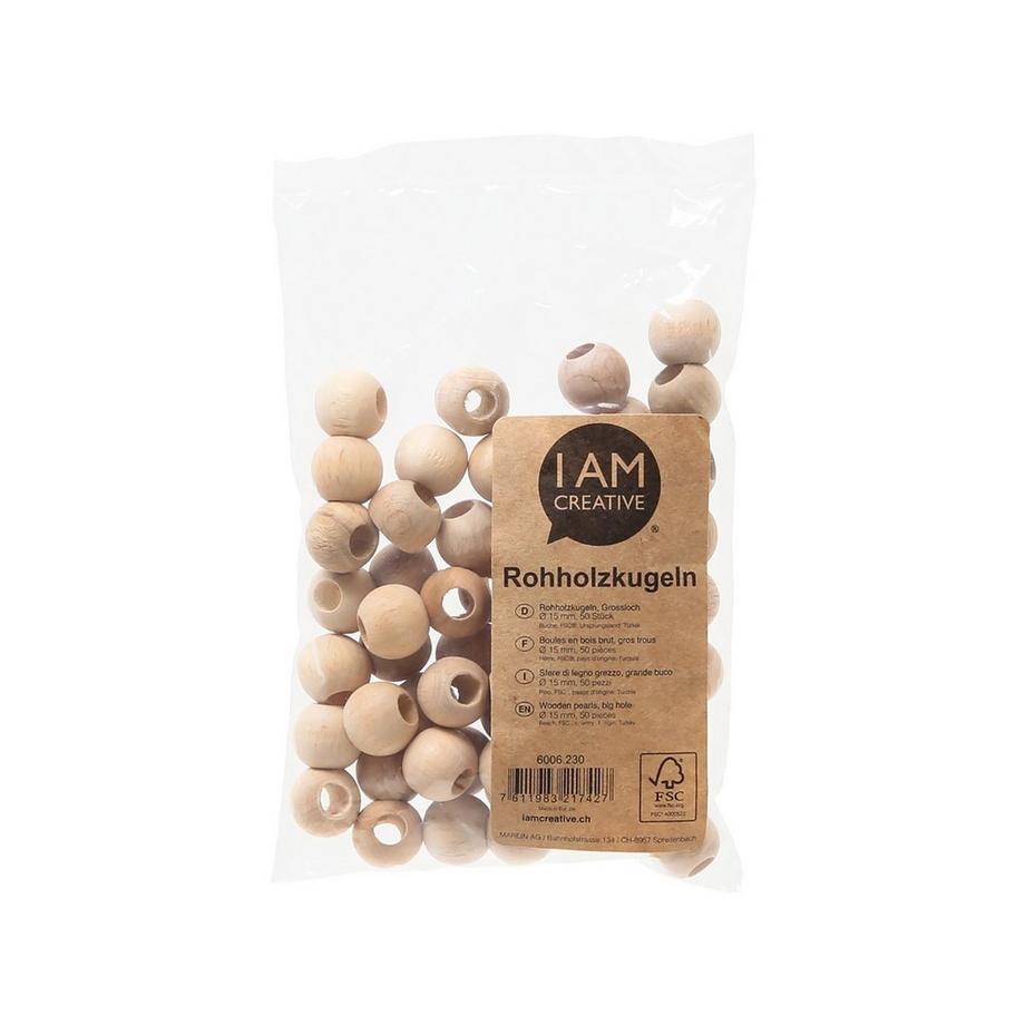 I am CreativeBoule en bois, Perles à gros trous, 15mm, 50 p.