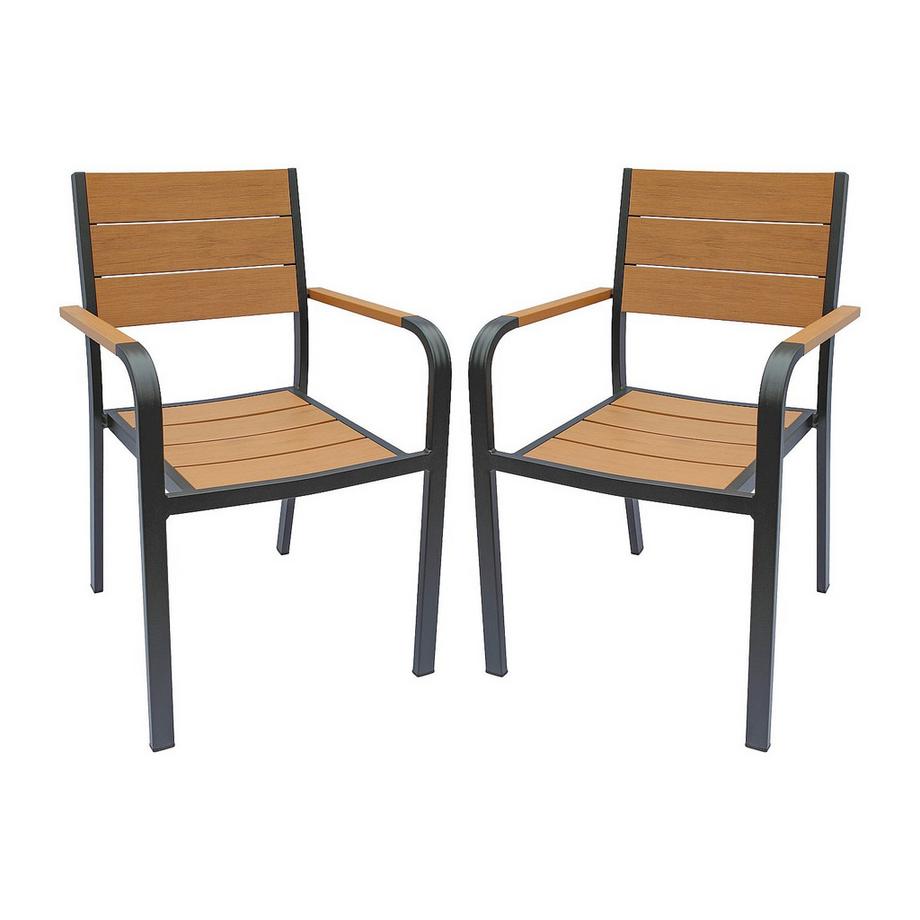 Vente-uniqueLot de 2 fauteuils de jardin empilables en aluminium textilène accoudoirs acacia TAIPIVAI