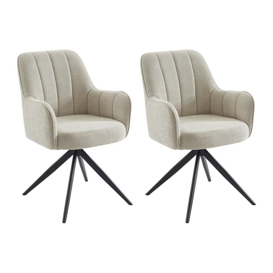 PASCAL MORABITOLot de 2 chaises avec accoudoirs en velours côtelé et métal noir - Crème - ORDIDA de Pascal MORABITO