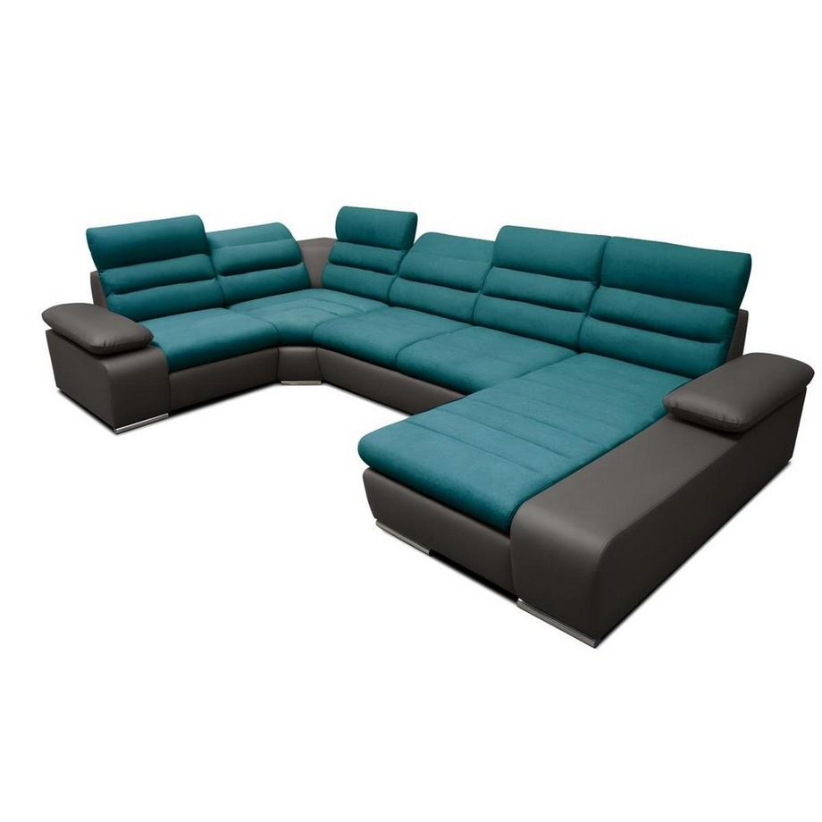 Vente-uniqueCanapé d'angle panoramique conible en tissu simili BOILEAU Bicolore turquoise Angle droit