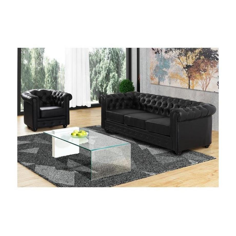 Vente-uniqueCanapé 3 places et fauteuil CHESTERFIELD - Simili Noir