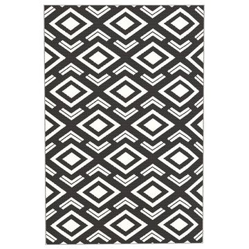 NorthioTapis d'extérieur, tapis d'extérieur robuste et résistant aux intempéries avec sac de transport, tapis pliable, style bohème, tapis d'extérieur pour salon, balcon, jardin, terrasse, salle de bain, couloir, cuisine, 182 x 274 cm, noir + blanc Aosom