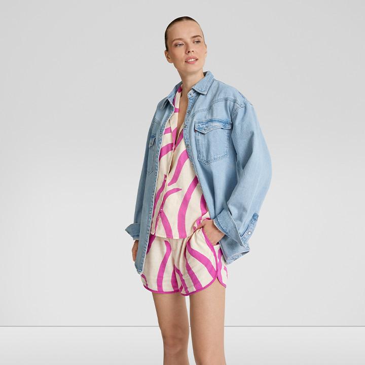 Osez une touche de Barbiecore avec ce deux-pièces décontracté en blanc et rose. Et combinez-le avec une chemise boyfriend en jean lorsque la soirée est plus fraîche.