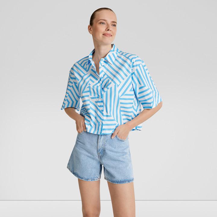 Manches courtes et motifs abstraits, cette chemise légère combine le style des années 90 avec la couleur tendance de cet été. Portez-la avec un jean court - et votre look décontracté est parfait.