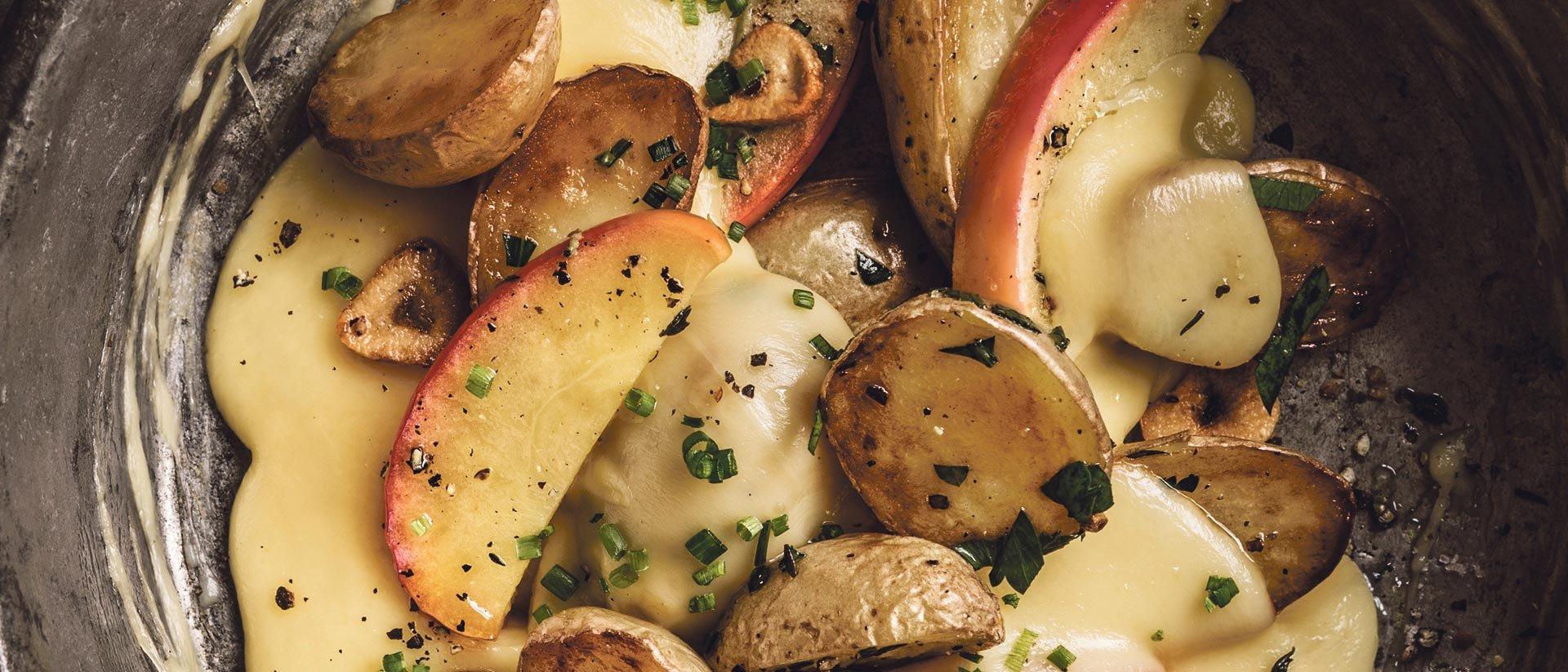 Pour accompagner le fromage fondu, il faut veiller à choisir un vin présentant une acidité moelleuse et assez légère. Le fendant/chasselas suisse est précisément ce type de vin. C’est pourquoi on l’associe généralement à la raclette ou à la fondue. Si vous êtes à la recherche d’accords un peu plus audacieux, une multitude d’options tout aussi intéressantes s’offre également à vous. Les pommes sautées confèrent à ce plat une note fruitée et légèrement sucrée qui s’accordera fort bien avec un vin subtilement aromatique aux notes de pomme et de pêche. La marsanne, un cépage français de la vallée du Rhône septentrionale, le heida ou le johannisberg valaisans sont également nos favoris
