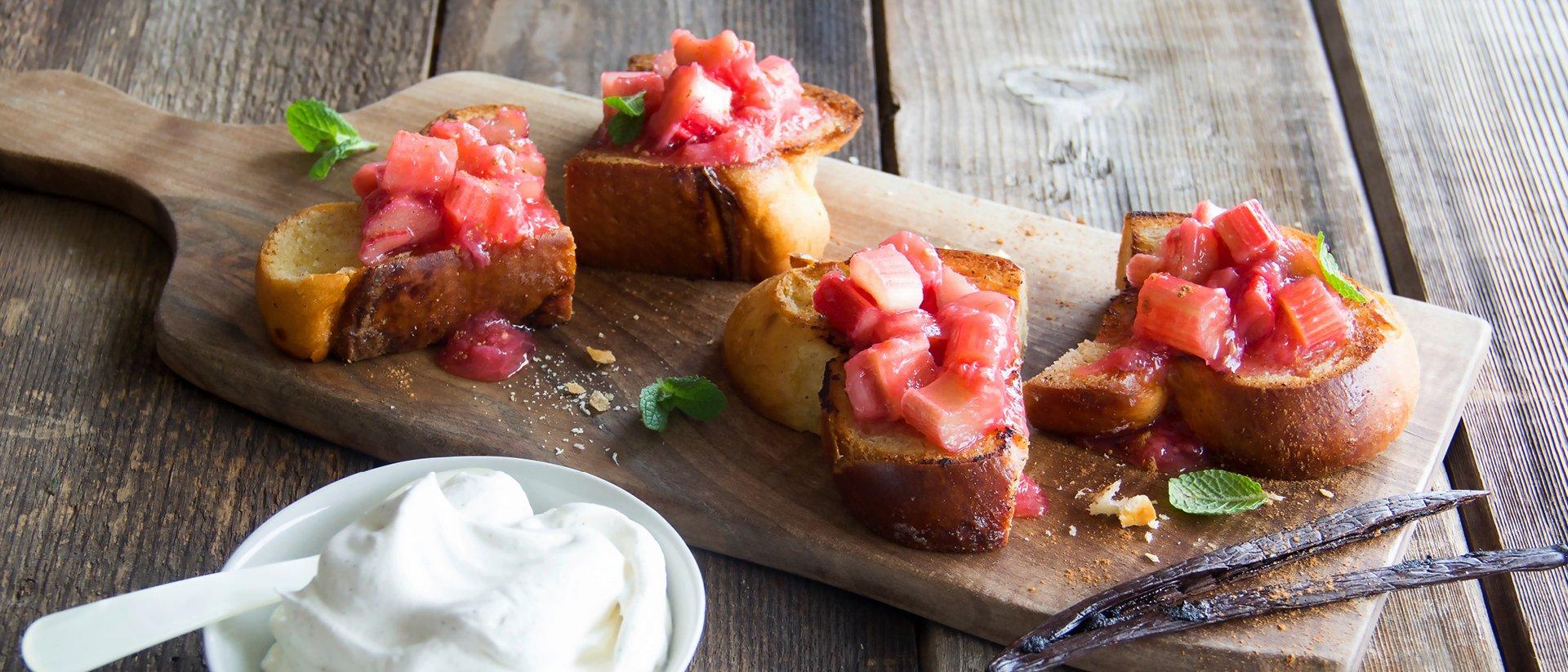 Tranches de tresse à la compote de rhubarbe et à la crème vanille