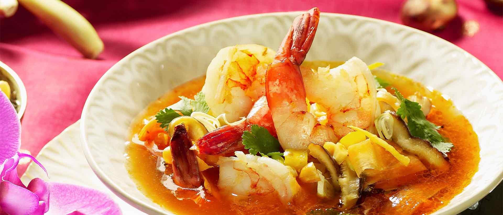 Soupe aigre-piquante «Manor Sélection» aux crevettes géantes et à la mangue thaïe