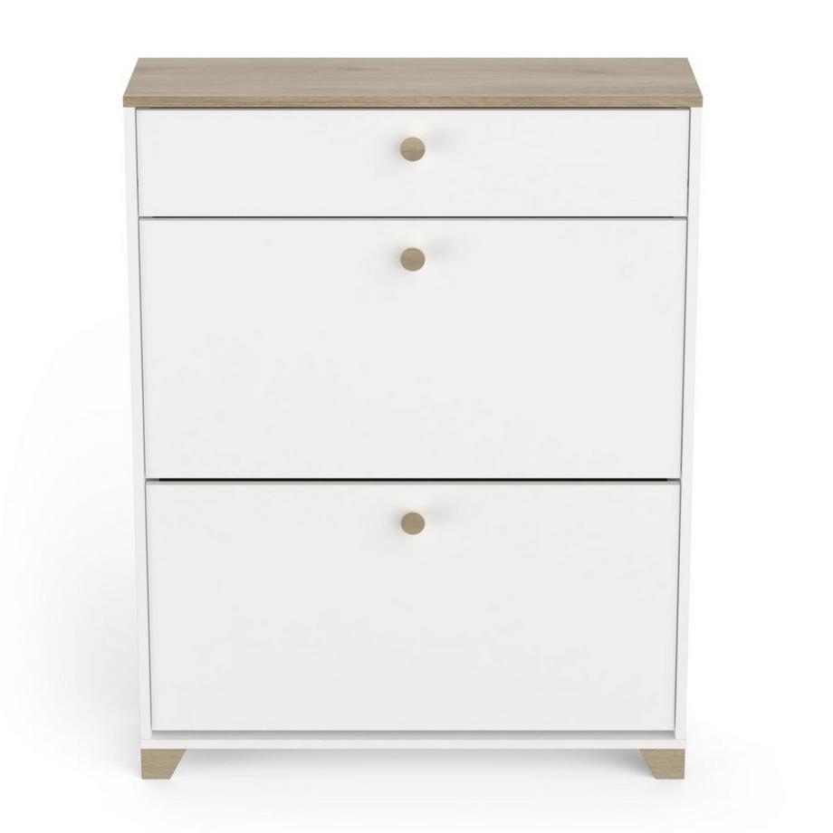 CalicosyMobile porta scarpe 2 ante ribaltabili e 1 cassetto decoro quercia kronberg e bianco - L80,8 cm