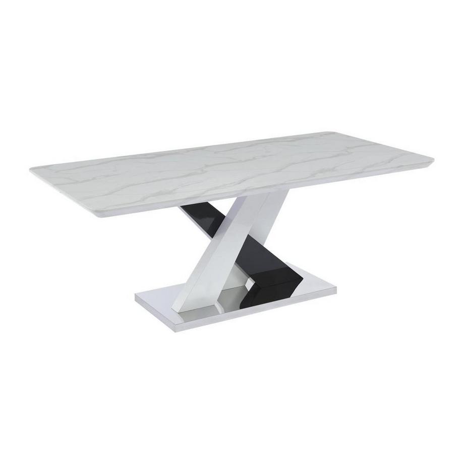Vente-uniqueTavolo da pranzo per 8 persone in MDF e Acciaio inossidabile Effetto Marmo Bianco e Nero - EVAELA