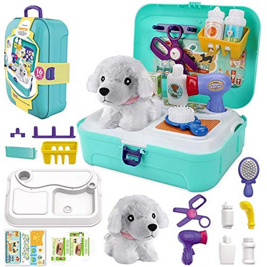 Spielzeug-Tierarztkoffer für Kinder, Arzt-Rollenspiel zum Füttern und Pflegen