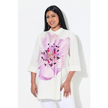 Ulla PopkenBlusa Lino A-Line Fiori Colletto Camicia Maniche 3/4